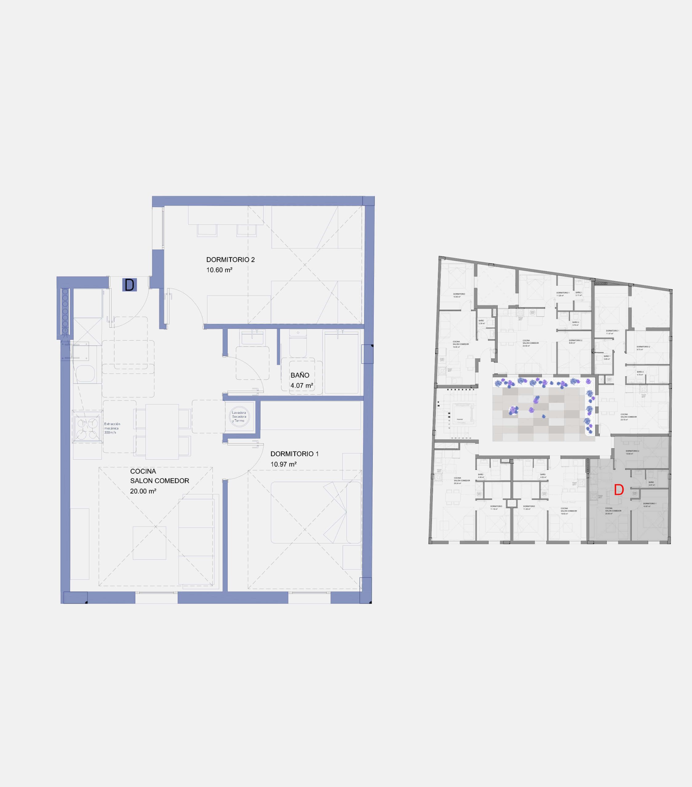 Apartamento de 2 dormitorio Puerta de acceso de seguridad con bisagras antipalanca y tres puntos de anclaje. Puertas de paso y armarios hasta el techo con base encapsulada en chapa de madera natural con herrajes de alta calidad. Dormitorio principal equipado con armarios o vestidores. Baños completo moderno y elegante con pavimento y paredes aplacadas en mármol natural e inodoro suspendido, lavabo encimera, columna de ducha y griferías marca ROCA. Cocina con muebles altos y bajos, con encimera COMPAC y herrajes de alta calidad. Electrodomésticos, que incluyen horno convencional, placa de inducción, campana extractora y lavadora y frigorífico integrado.