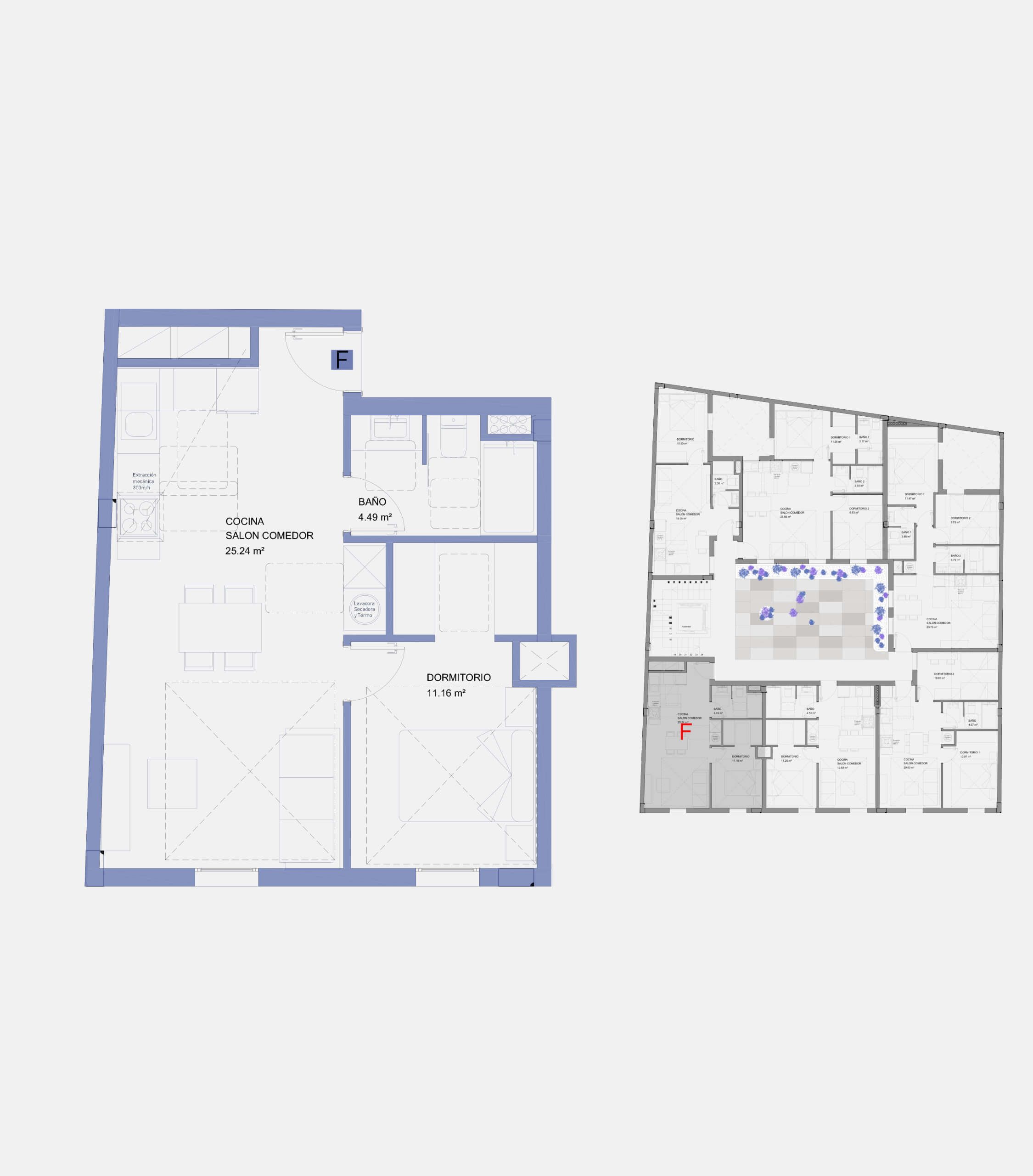 Apartamento de 1 dormitorio Puerta de acceso de seguridad con bisagras antipalanca y tres puntos de anclaje. Puertas de paso y armarios hasta el techo con base encapsulada en chapa de madera natural con herrajes de alta calidad. Dormitorio principal equipado con armarios o vestidores. Baño completo moderno y elegante con pavimento y paredes aplacadas en mármol natural e inodoro suspendido, lavabo encimera, columna de ducha y griferías marca ROCA. Cocina con muebles altos y bajos, con encimera COMPAC y herrajes de alta calidad. Electrodomésticos, que incluyen horno convencional, placa de inducción, campana extractora y lavadora y frigorífico integrado.